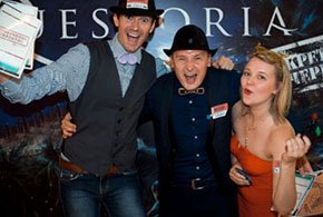 Квестория — игра для тимбилдинга, когда хочется удивить коллег и попробовать что-то новое. В офис, ресторан или на пикник приедут ведущие с игрой и реквизитом, и коллеги на пару часов станут шпионами, инопланетянами или даже пациентами психушки.